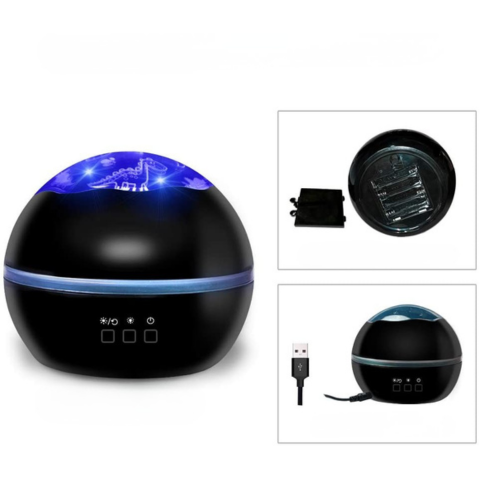 Lampen projiserer bilder av dinosaurer som Tyrannosaurus, Triceratops, Brachiosaurus og Pteranodon. Den har to driftsmoduser: projeksjon og nattlys. Med 9 farger å velge mellom skaper den en magisk atmosfære for barn.